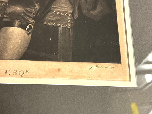 Second Oldest Print, Early Mezzotint of James Balfour, Esq.- 1796. Size 25" x 28.5" Framed